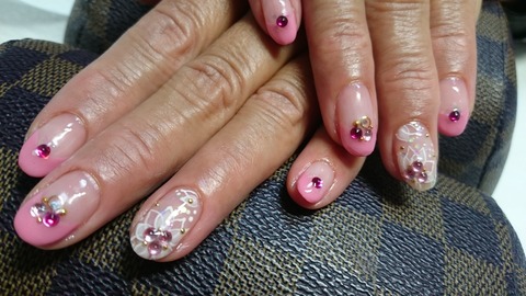 ピンクグラデ フラワーネイル オーダーネイルチップ専門店アトリ