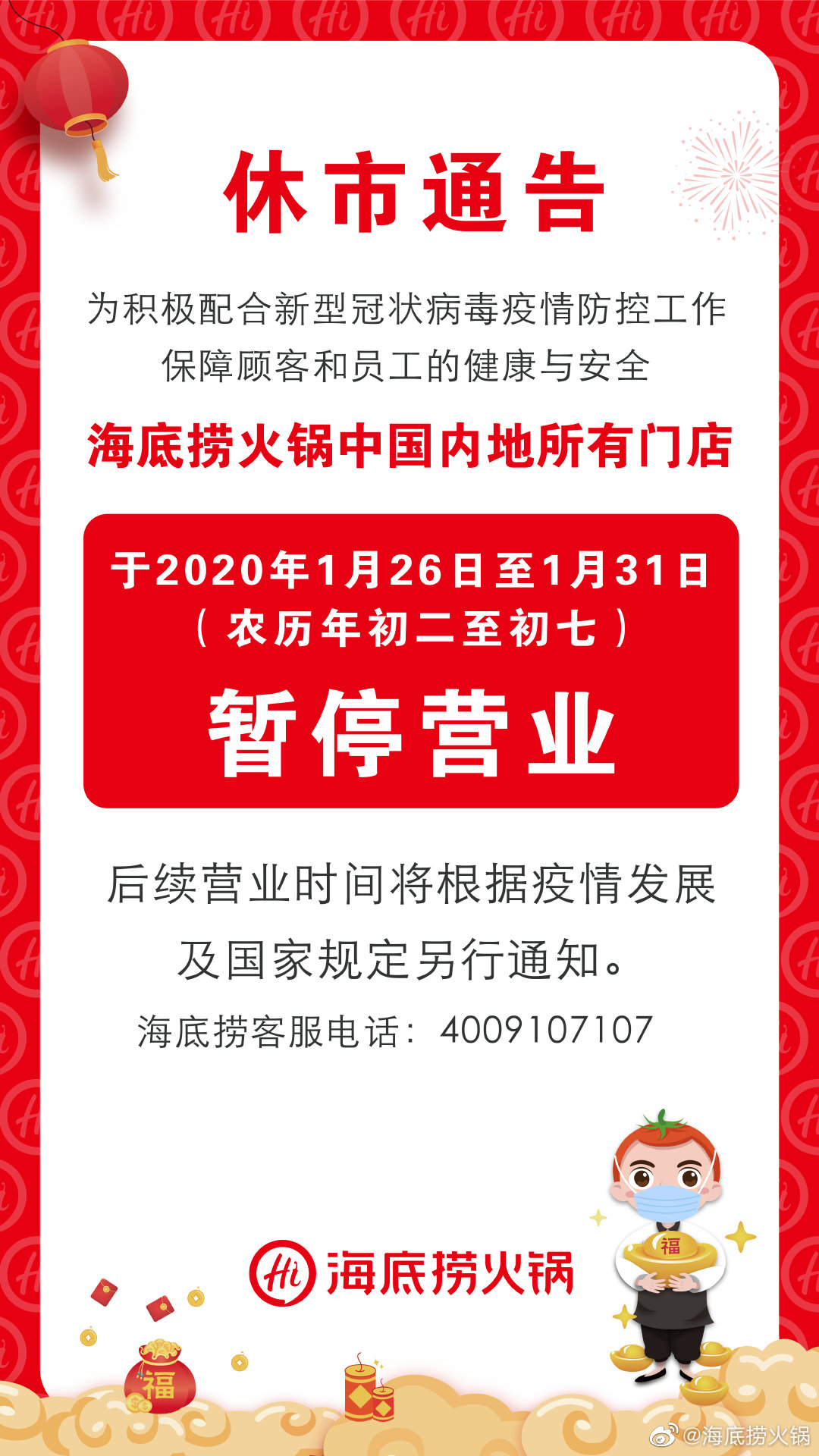 海底捞全国内地所有门店暂时停业至1月31日 海底捞 新浪财经 新浪网