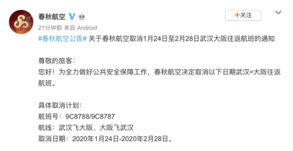 南航 1月23日武汉部分进出港航班取消 新浪财经 新浪网